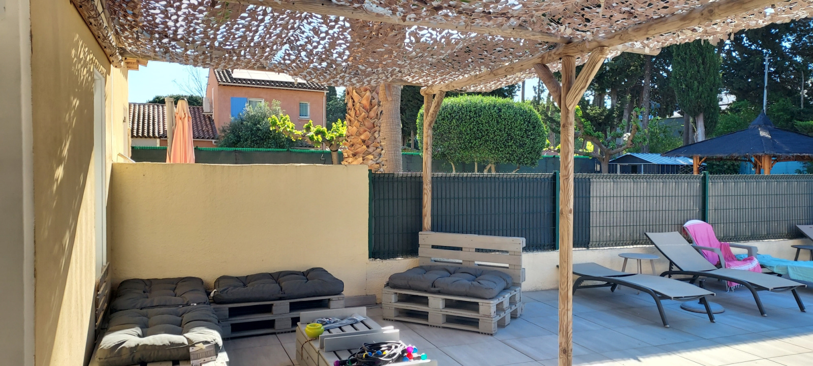 Grand Salon/séjour sur terrasse couverte.