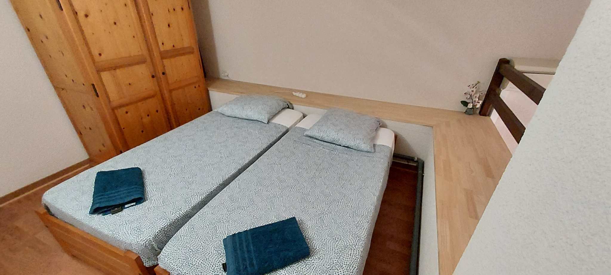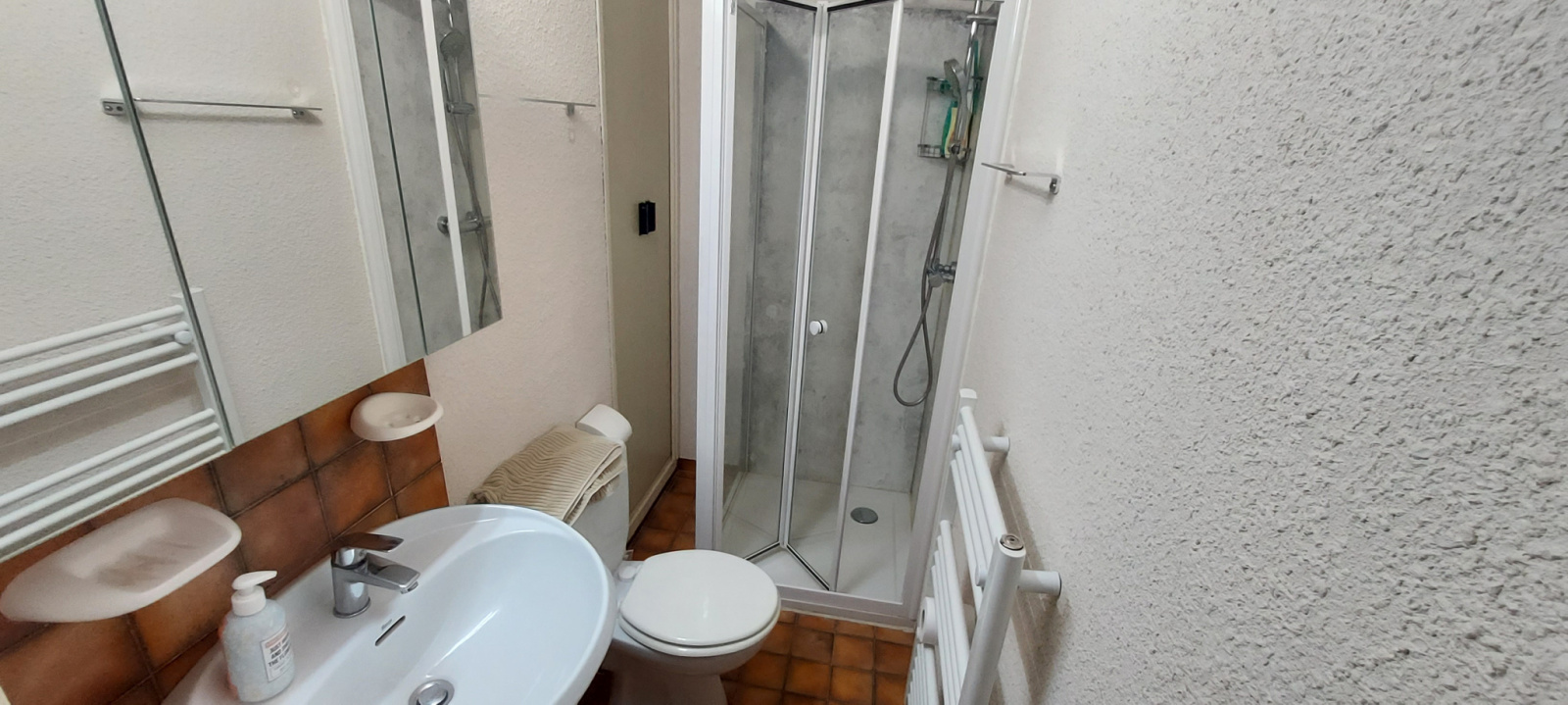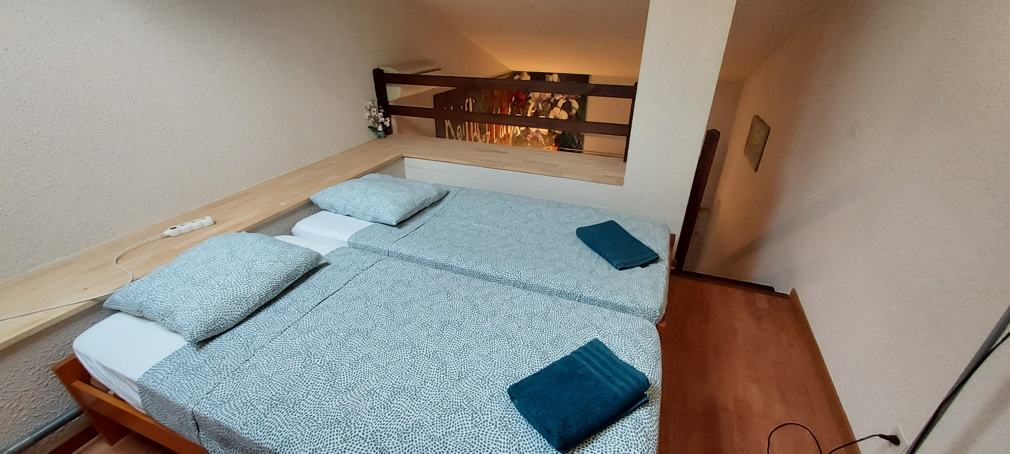 Appartement composé d'une entrée, une chambre, une salle d'eau avec WC, un séjour avec cuisine ouverte, une mezzanine faisant office de 2ème chambre, une dépendance avec Lave Linge et réfrigérateur additionnel.