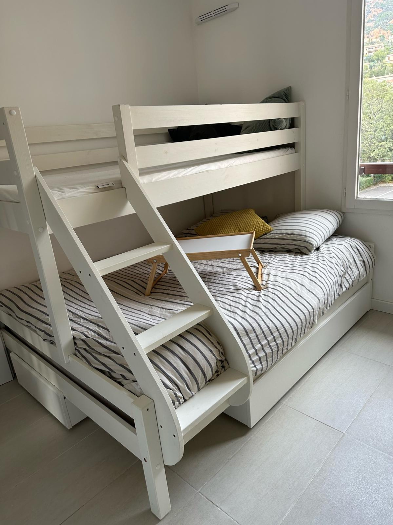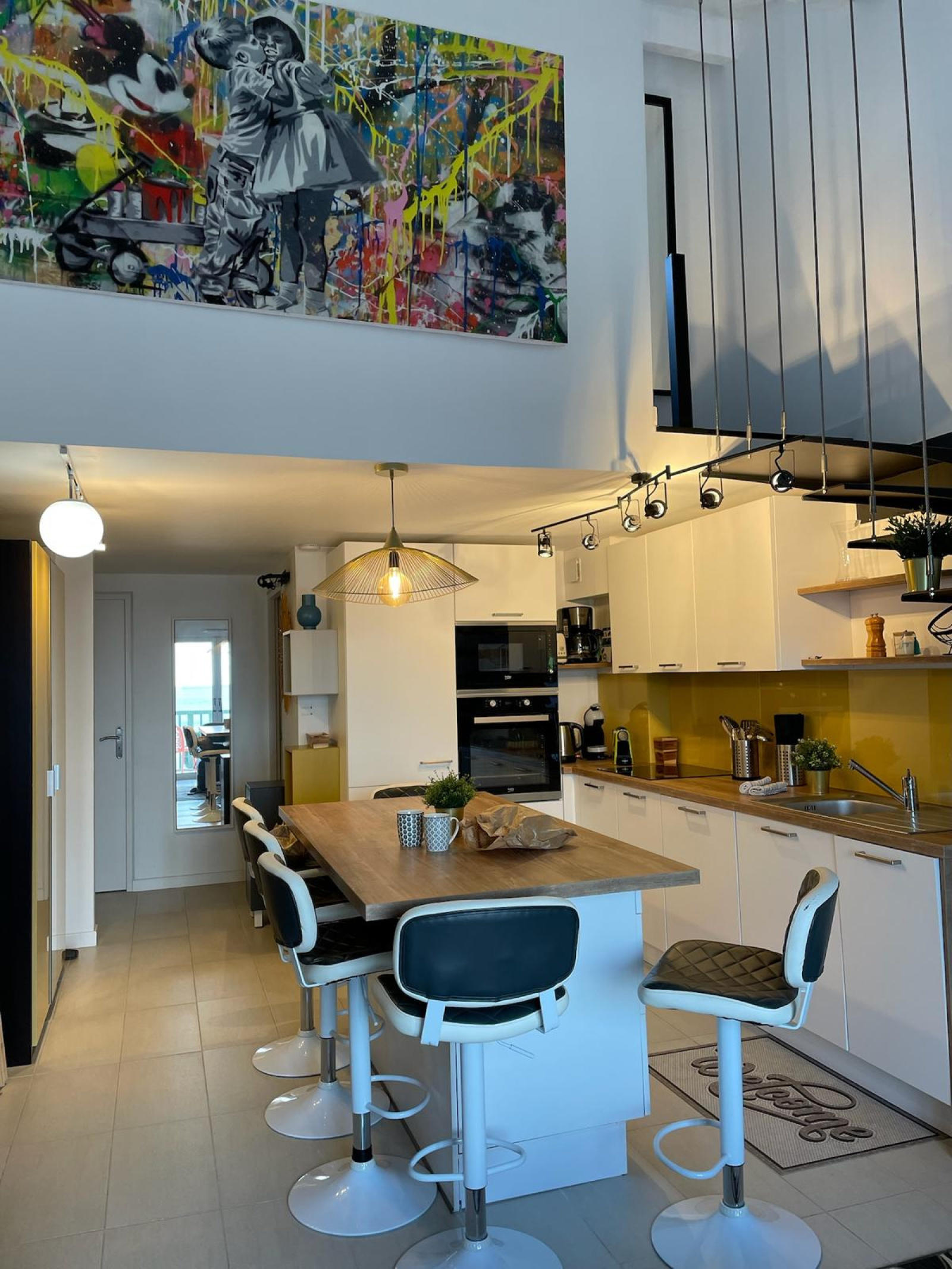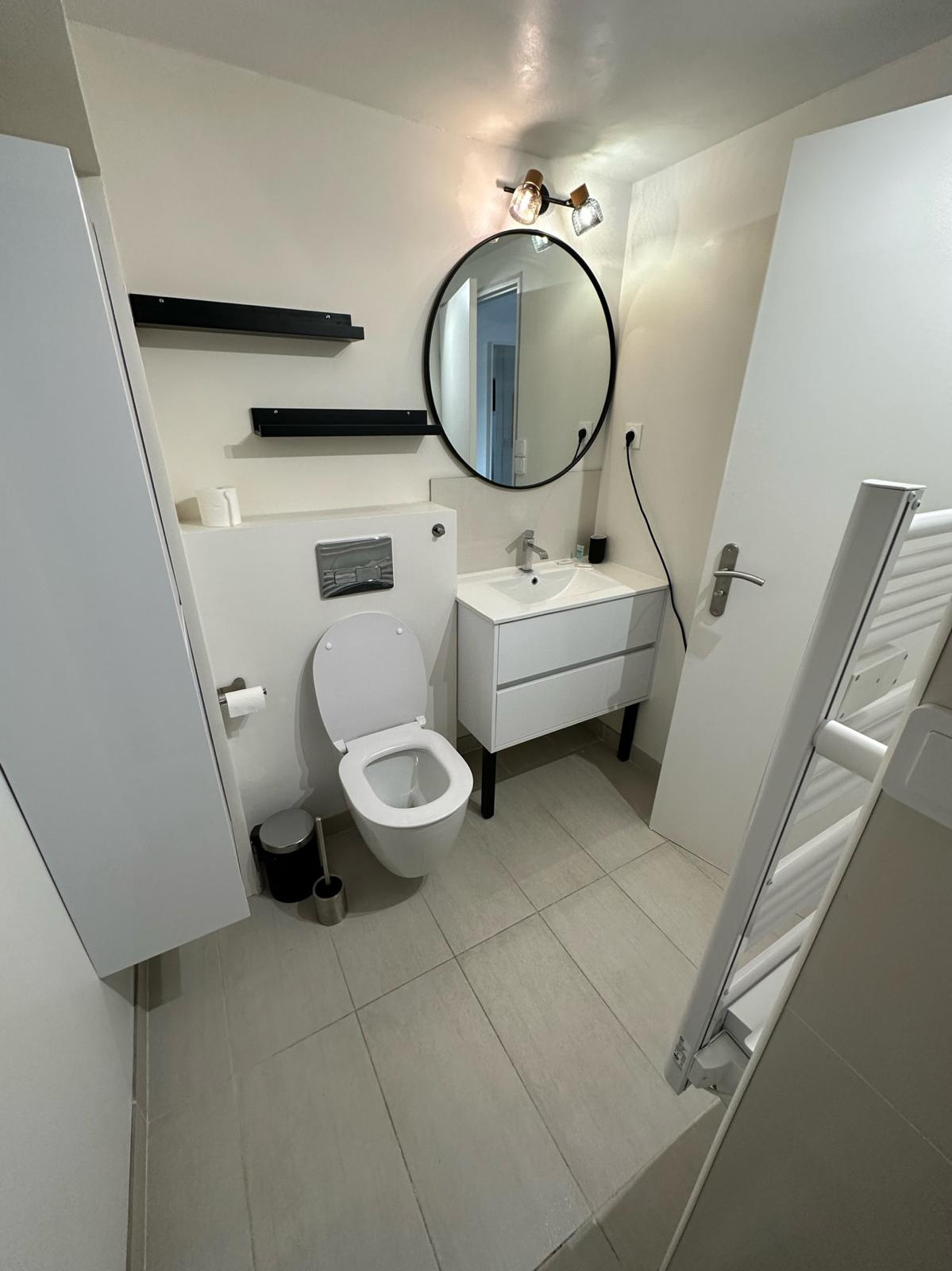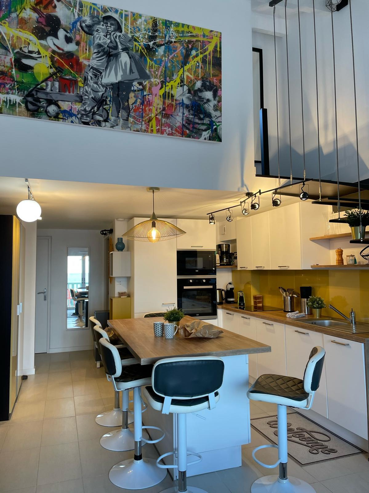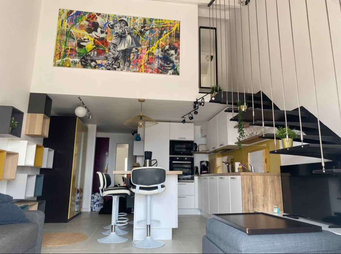 A l"étage chambre , salle d'eau et wc climatisé . Entièrement rénové , place de parking privative extérieur . Idéal investissement locatif tout en profitant en famille , entre amis des accés à pied aux commerces , à la mer .