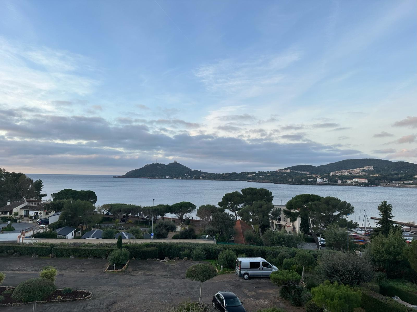 Au sein d'une résidence fermée avec piscine , charmant 3p rénové au dernier étage composé d'une chambre , salle de bain , wc , cuisine équipée , salon séjour ouvrant sur terrasse vue mer .