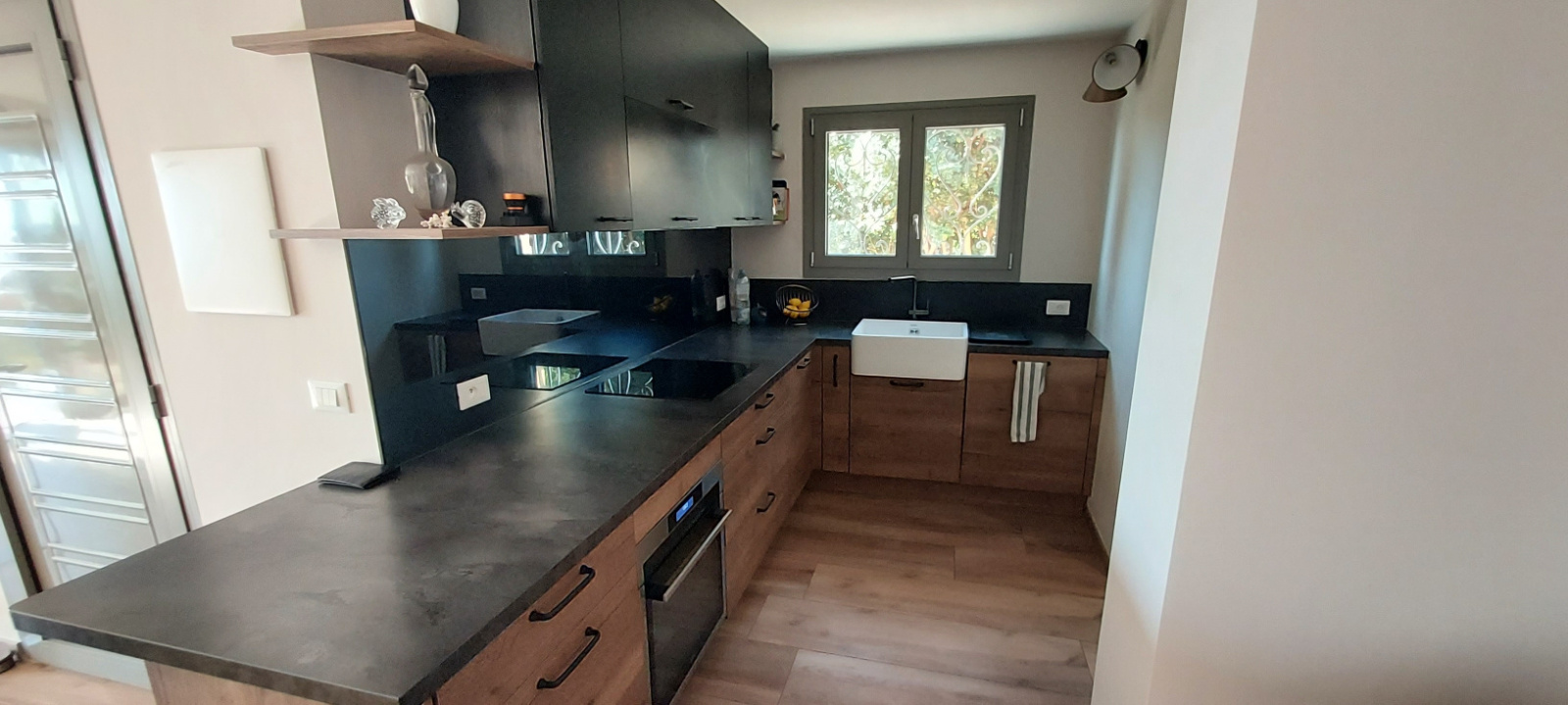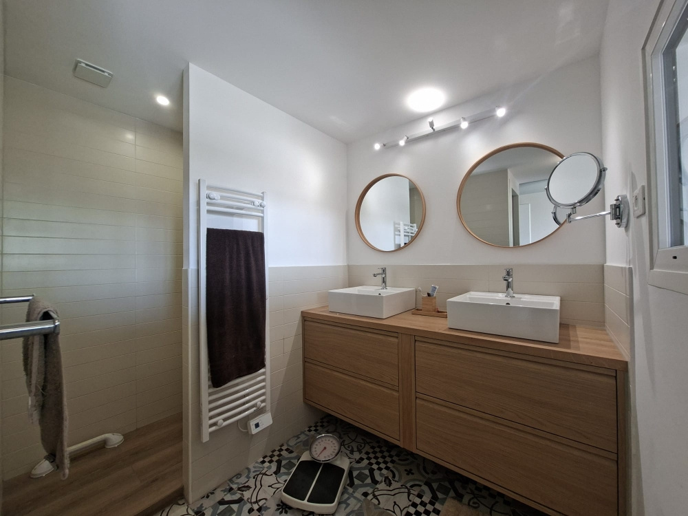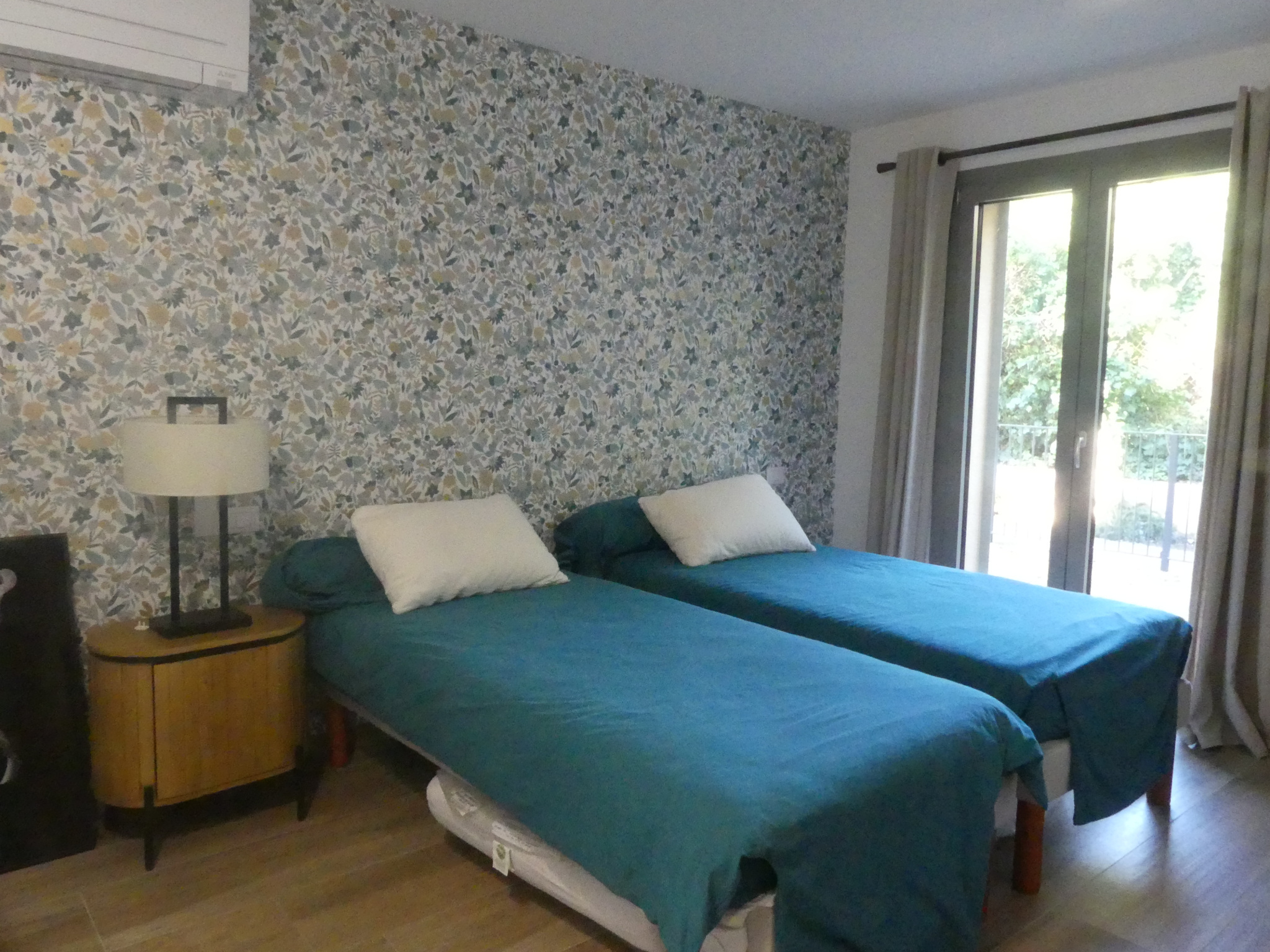Quatre chambres, deux salles d'eau, deux WC séparés, cuisine entièrement équipée avec arrière cuisine, belle terrasse Sud, petit jardin au Sud et un au Nord.