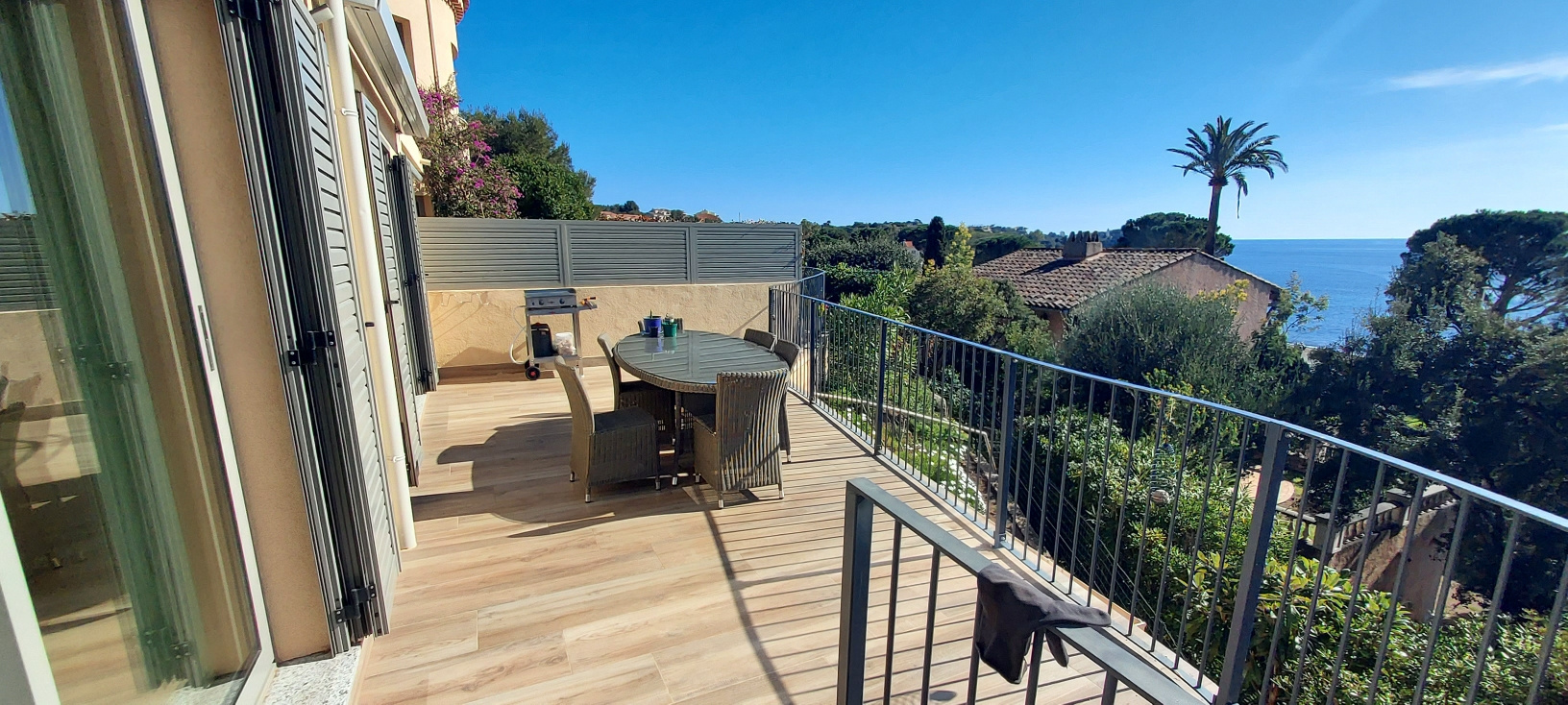 Très bel appartement de standing, quatre pièces dans une résidence entièrement rénovée (2021). Très belle vue mer sur la rade d'Agay: