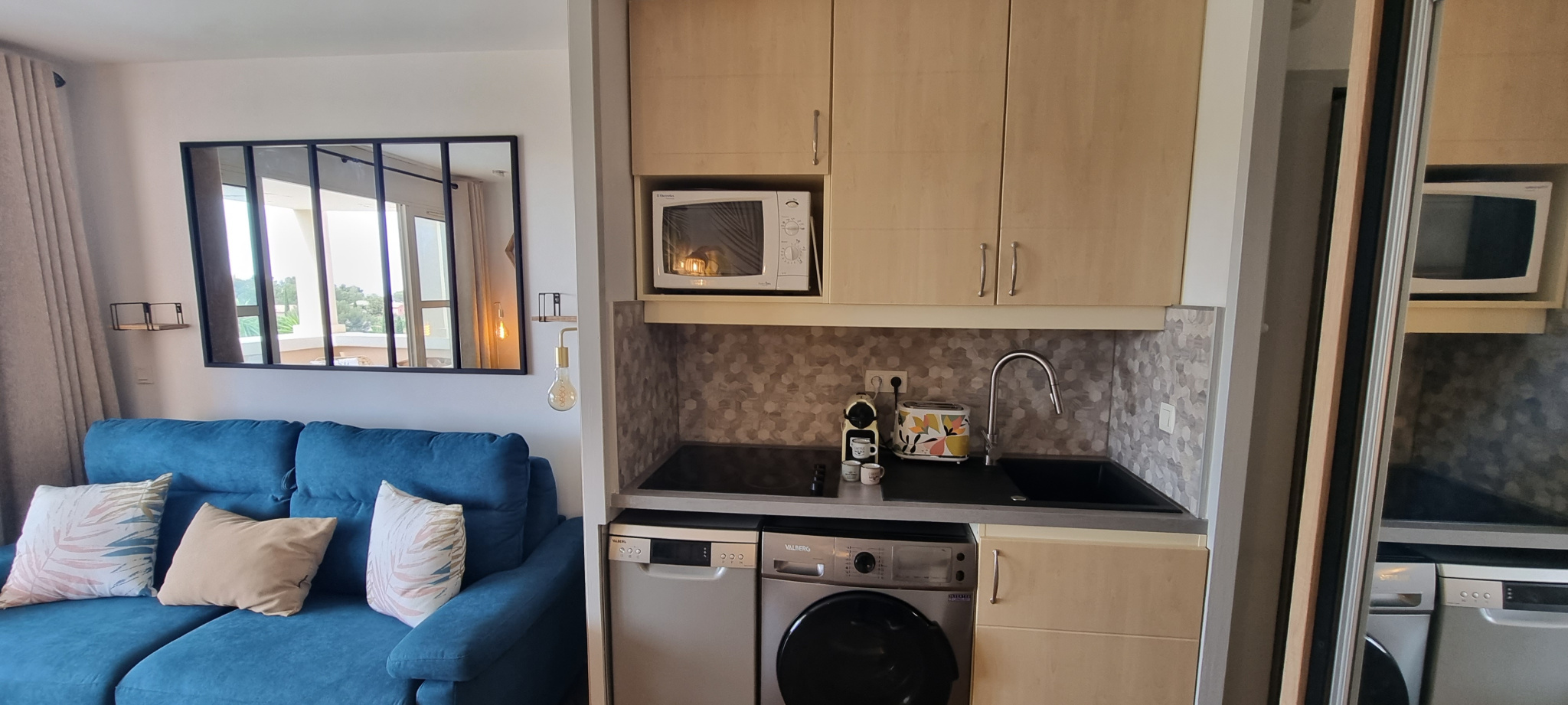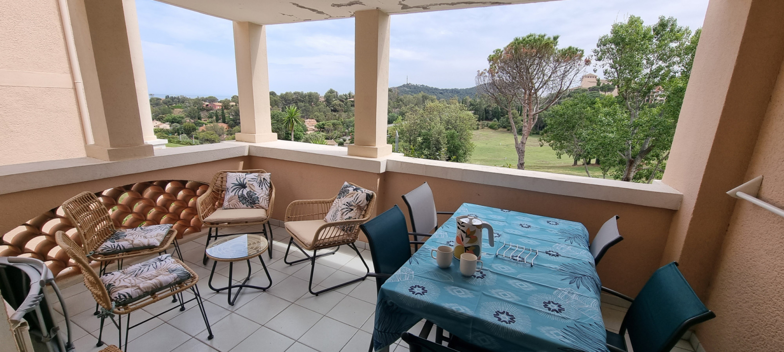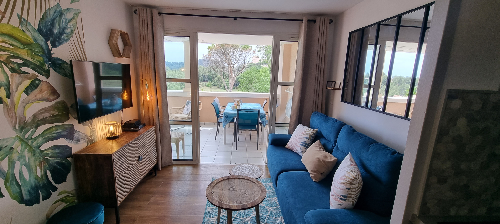 Au sein du domaine aux nombreuses piscines , commerces et autres ballades en vélo , à pied dans l'esterel , nous vous proposons ce charmant 2p climatisé , rénové au sein d'un environnement des + recherchés par sa localisation . Il est composé d'une chambre , salle d'eau , wc , cuisine équipée , salon séjour ouvrant sur une terrasse couverte extérieur . Idéal pour un investissement locatif , séjour en famille , entre amis. Une place de parking dans le garage commun couvert vient compléter ce bien . Vidéo si interêt.