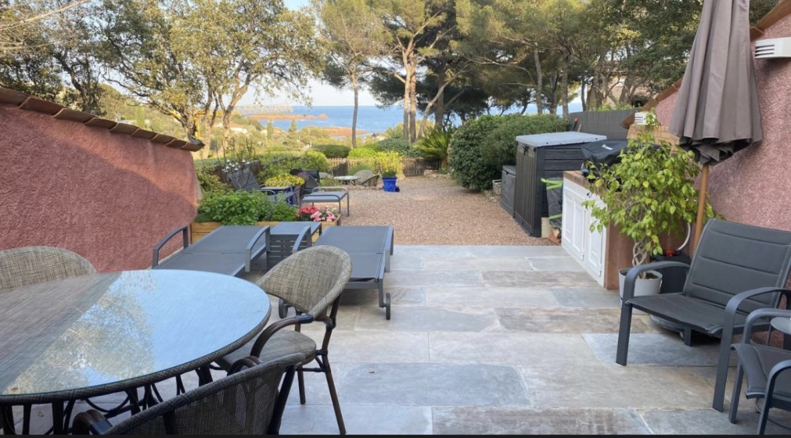 Le jardin de 100m2 avec sa vue mer est idéal pour passer de trés bons moments en famille , entre amis sans oublier la possiblité de louer votre bien tout en bénéficiant de la piscine du Domaine.